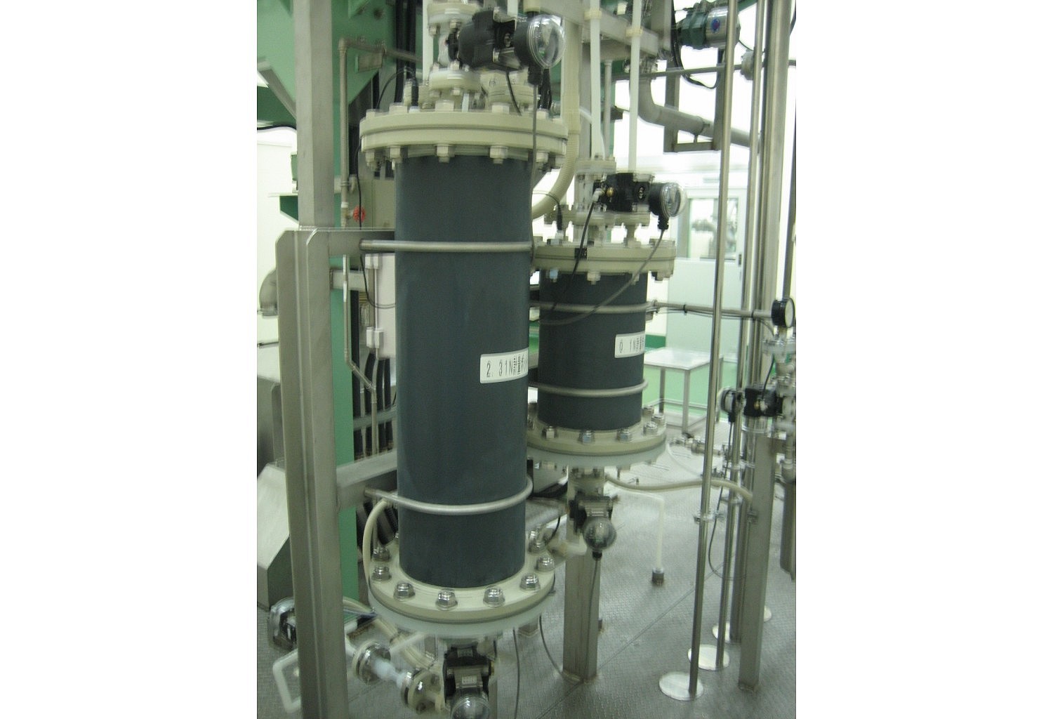 製薬工場のpH調整工程の塩酸希釈設備を弊社で設計・施工しました。 装置及び配管(HIVPクリーンパイプ、PVDF管)の選定、機器レイアウト、制御盤作製、操作用タッチパネル・希釈工程プログラミングも弊社で施工しました。 塩酸の希釈濃度を%からN規定値にする為に±3%の規定度が検収条件の為、質量流量計(コリオリ式)のプログラミングに苦労しました。 製薬工場への納入の為、GMP上のバリデーション(DQ、IQ、OQ)の計画、実施、検証も弊社で実施しました。