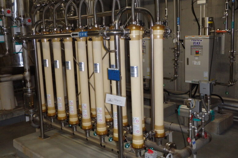 製薬工場 UFモジュール交換 医療品の製造に必要な大量の純水を製造する為に、膜処理にて造水を行っています。工事施工した工場では、ウイルス等の微小な粒子も除去できるUF膜を使用しています。洗浄によって劣化する為、定期的に交…
