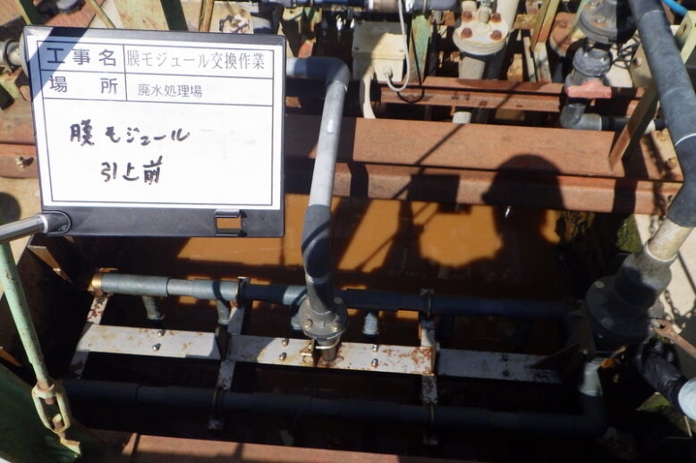 製薬工場 膜モジュール交換 工場排水を膜処理装置で処理し、河川に放流しています。経年劣化により膜が目詰まりしやすくなる為、定期的に新品に交換しています。膜モジュールは乾燥すると使用不能になるので、短時間で交換できるように…