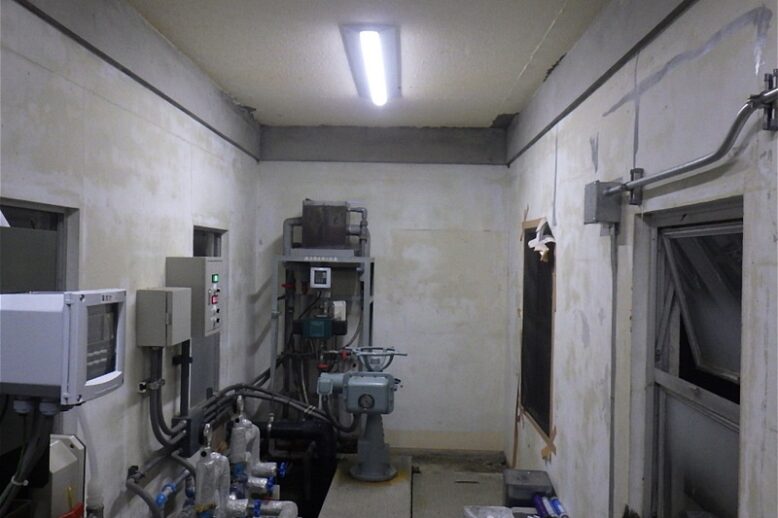浄水場 塗装工事 浄水場の電気設備工事と併せて、室内塗装の工事を行いました。室内には計器類やポンプ類が設置されているので、養生作業を確実に行いました。 施工前 養生作業 塗装作業 施工後