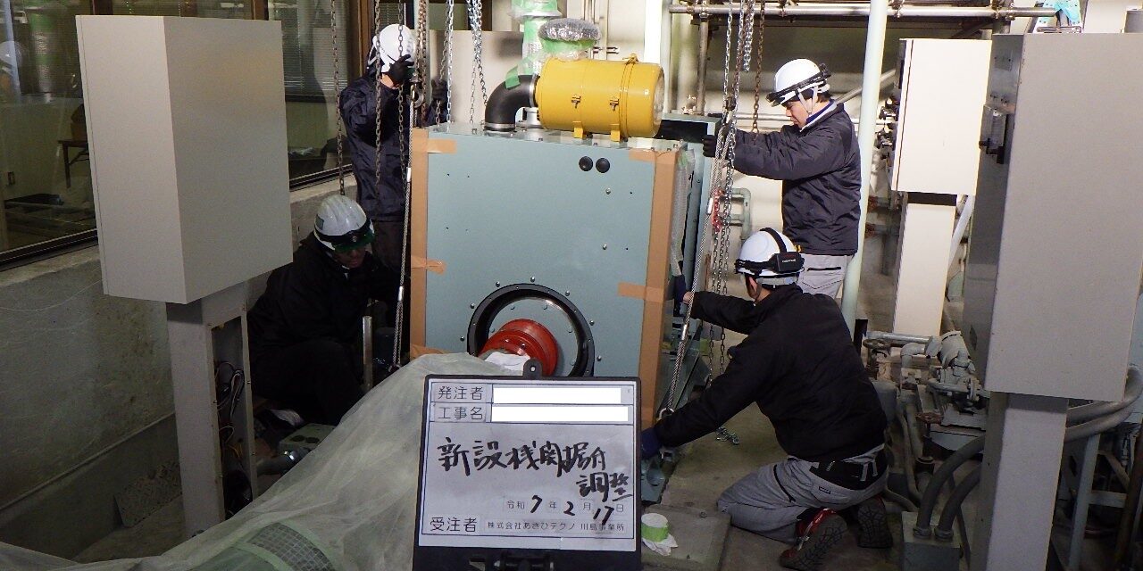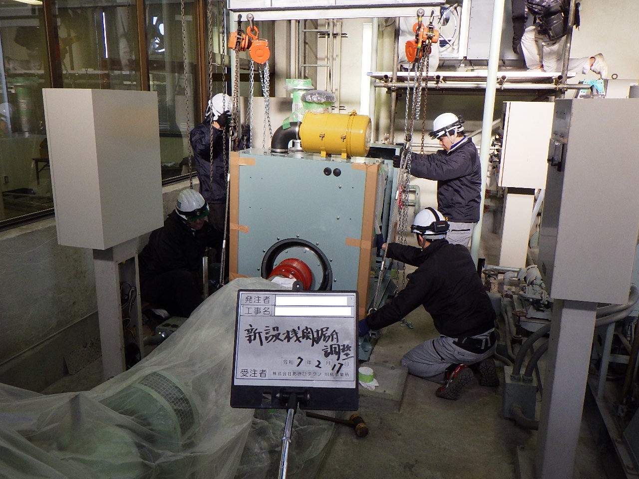 川島八幡・越辺川排水機場にある、ディーゼルエンジンの改造(水冷式から空冷式)更新工事を施工致しました。
