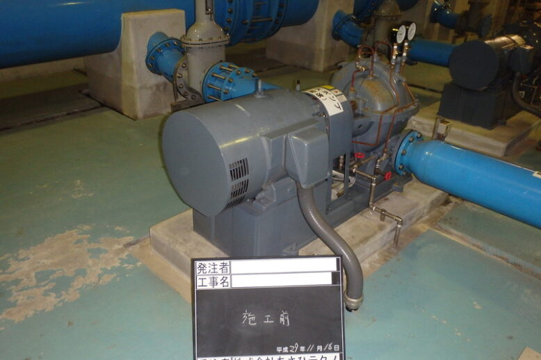 配水ポンプ電動機コイル巻替 配水場に設置している配水ポンプの電動機コイルが絶縁劣化を起こしている事から、コイルの巻替による修理を実施し、併せてベアリング等も交換致しました。電動機コイル巻替は専用工具や乾燥設備が必要なため…
