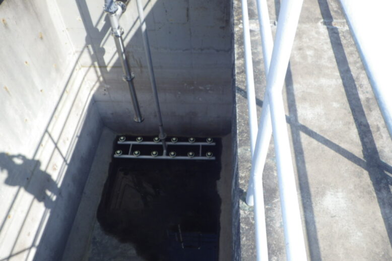 平成22年3月 弊社設計・施工の、廃水処理最終膜処理槽の膜モジュールを浸漬洗浄しました。 旭化成製MFモジュール12本を、シュウ酸2%に漬け込み、中空糸の外側に付着した鉄分除去を実施しました。 膜処理槽(稼働中) 引き上…
