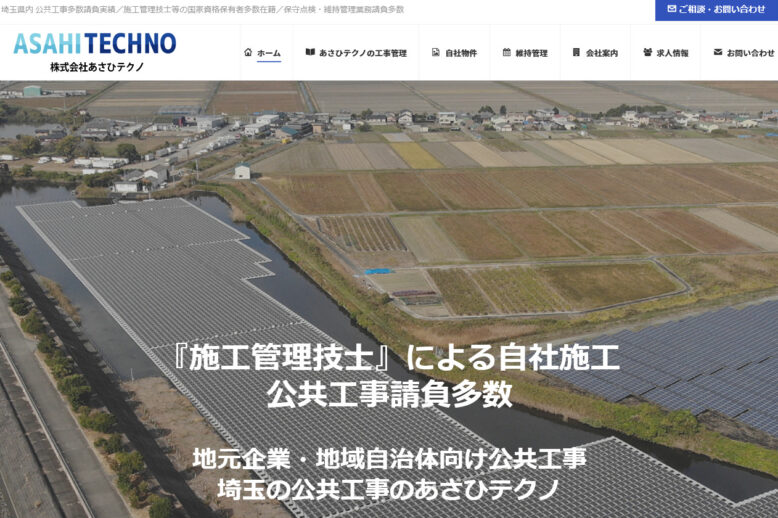 株式会社あさひテクノのホームページリニューアルしました。各施工事例を一新しまして今後も事例を掲載していきます。 埼玉県の機械器具設置工事や公共工事ならあさひテクノにお任せください。電気工事、管工事、建築工事の施工管理も承…