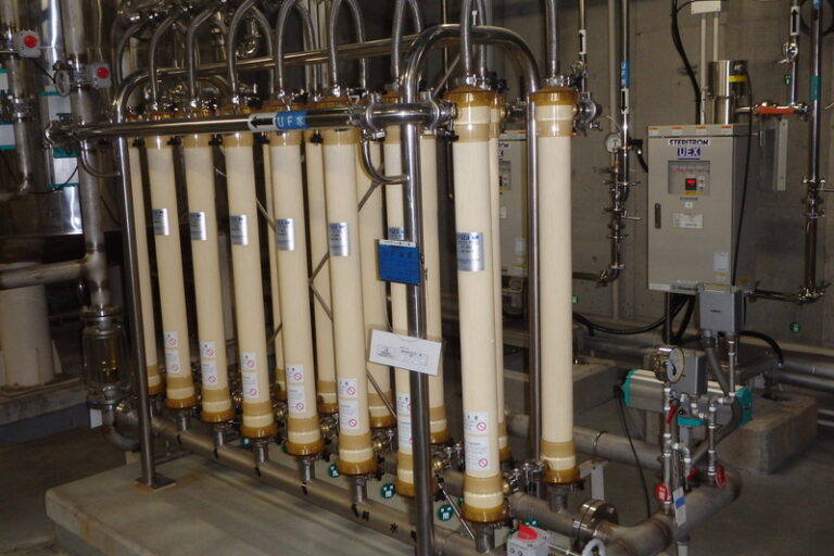 製薬工場 膜モジュール交換 工場排水を膜処理装置で処理し、河川に放流しています。経年劣化により膜が目詰まりしやすくなる為、定期的に新品に交換しています。膜モジュールは乾燥すると使用不能になるので、短時間で交換できるように…